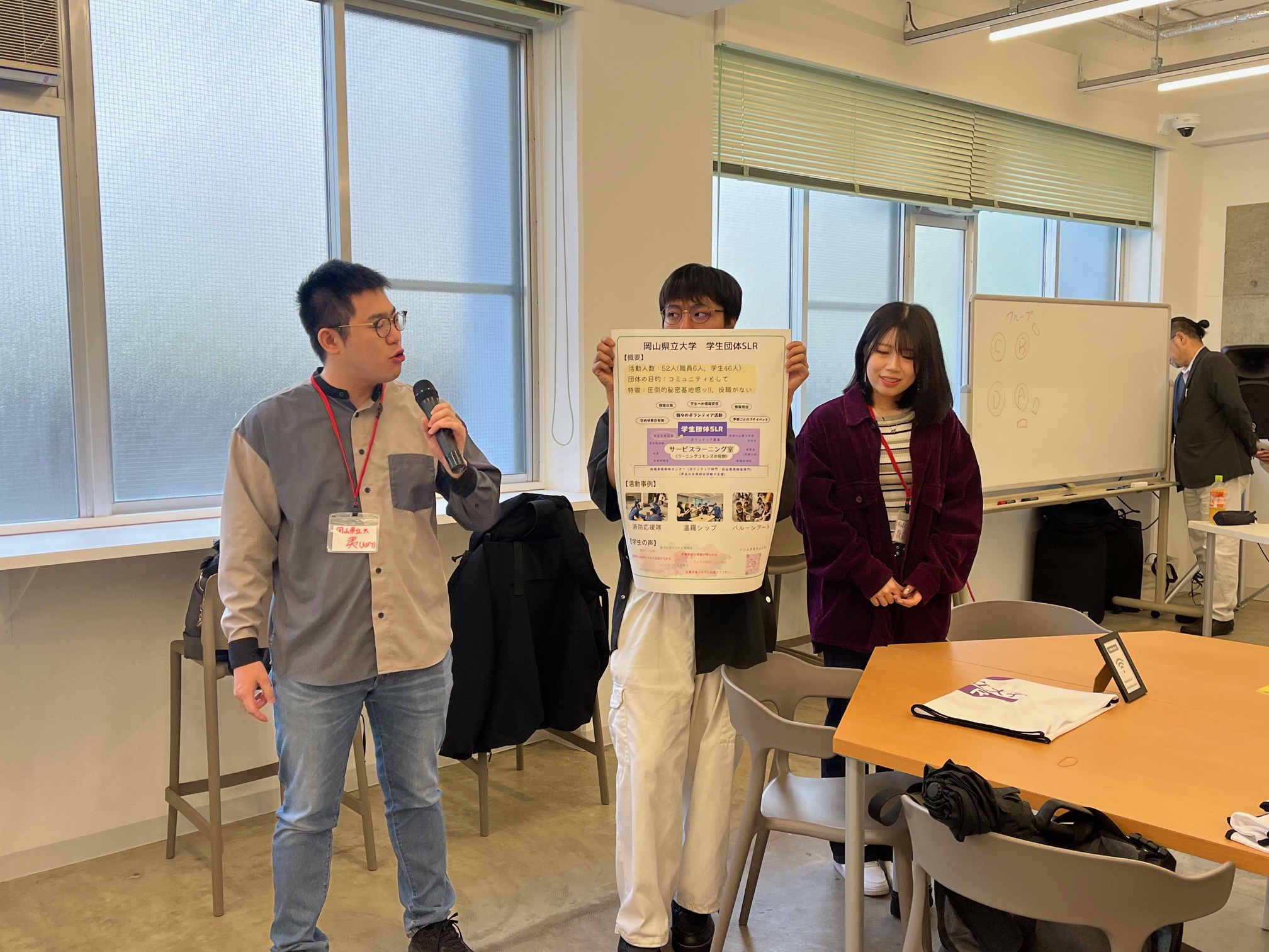 10月25日、吉備国際大学で大学生ボランティアセンター交流会(主催:岡山県ボランティア・NPO活動支援センター「ゆうあいセンター」、学校法人順正学園 吉備国際大学 順正学園ボランティアセンター)があり、学生団体SLRのメンバー3名が参加しました。この交流会は、岡山県内の大学ボランティアセンターに関わる学生が一堂に会し、活動の現状や課題、今後の展望を共有することを目的に開催されました。